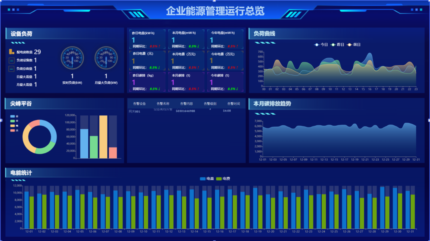 支持对能耗数据数据按曲线、表格、饼图等多种形式进行展示,对能耗数据按年、月、日进行存储与打印,并支持Excel表格导出;支持对能耗数据按分类分项进行统计,并支持根据用户需求,实现按分楼栋、分区域、分部门及分区域对能耗进行统计;支持对能耗数据按区域、部门进行同比、环比等实时分析,为对能耗评比与考核提供数据支撑;