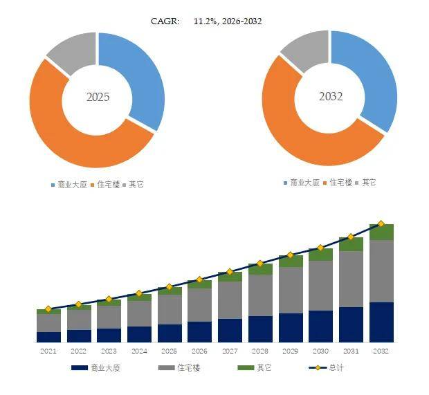 就产品应用而言,目前住宅楼是最主要的需求来源,占据大约53.2%的份额。