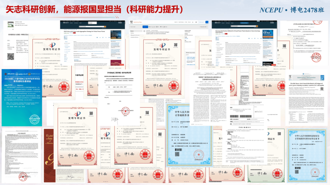 科研报国,勇担时代使命。班级立足工程博士培养目标,聚焦能源电力行业“卡脖子”关键工程技术难题,长期多次深入西藏阿里、内蒙古白云鄂博、乌兰察布等地工程一线,开展微电网设计、智慧运维、装备状态评估等关键技术研究。从国产器件到高可靠装备研制,再到新型电力系统协同控制与安稳运行,同学们真正将论文写在祖国大地上。上一学年,班级同学已深度参与国家级、省部级重点科研项目35项,发表高水平论文18篇,授权专利14项,荣获国家电网公司科技进步奖特等奖、中国期刊文献学术精要高影响力论文等多项殊荣,展现了卓越的科研实力与学术影响力。