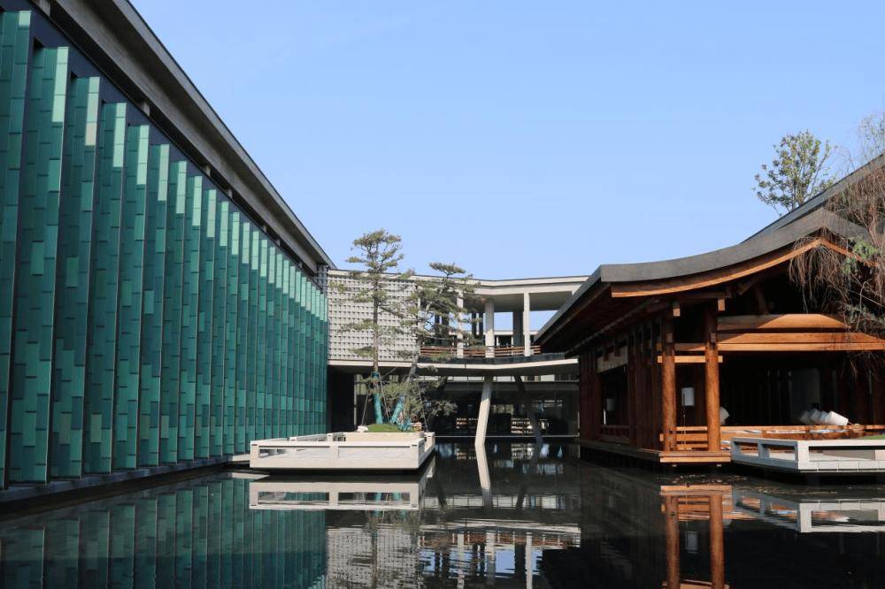 杭州国家版本馆位于世界文化遗产——良渚遗址旁边,总建筑面积10.31万平方米,在一座原本废弃的矿坑中,经过巧妙处理,采石所余的山体与楼阁互为掩映,营造出曲径通幽的景象,被誉为“赓续中华文脉、坚定文化自信、展示大国形象、推动文明对话”的精品传世工程。