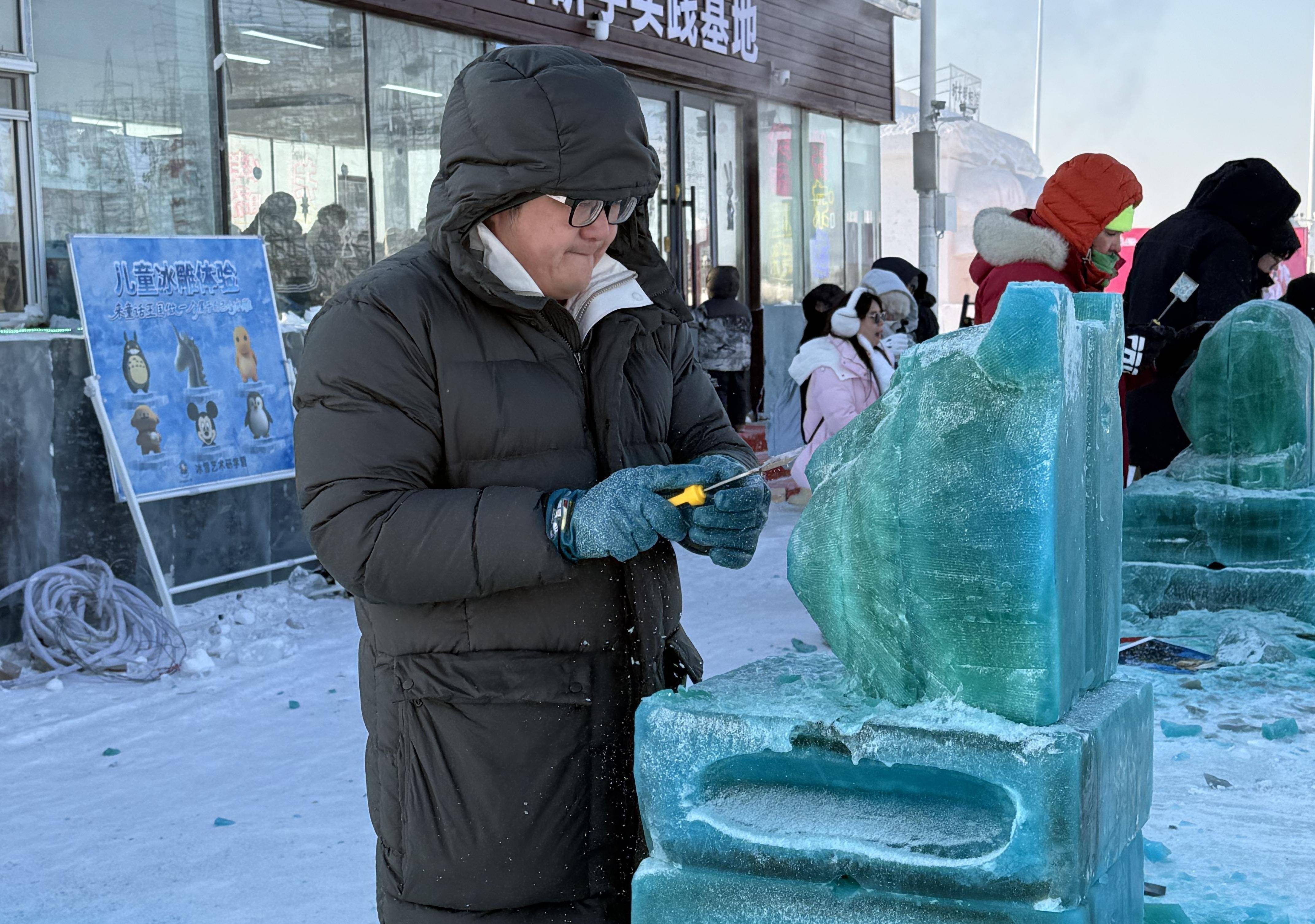 亚冬会的“绿”,贯穿从理念到实践的每一环节。曾在亚冬会开幕式分会场哈尔滨冰雪大世界惊艳国际友人的彩色冰雕,今冬再度亮相园区。继去年推出青花瓷、宝剑等主题彩冰作品后,哈尔滨师范大学张鑫团队今年以东北农家院为场景,创作了玉米、南瓜、辣椒等栩栩如生、充满东北情趣的彩冰景观,成为游客争相打卡的网红热点。