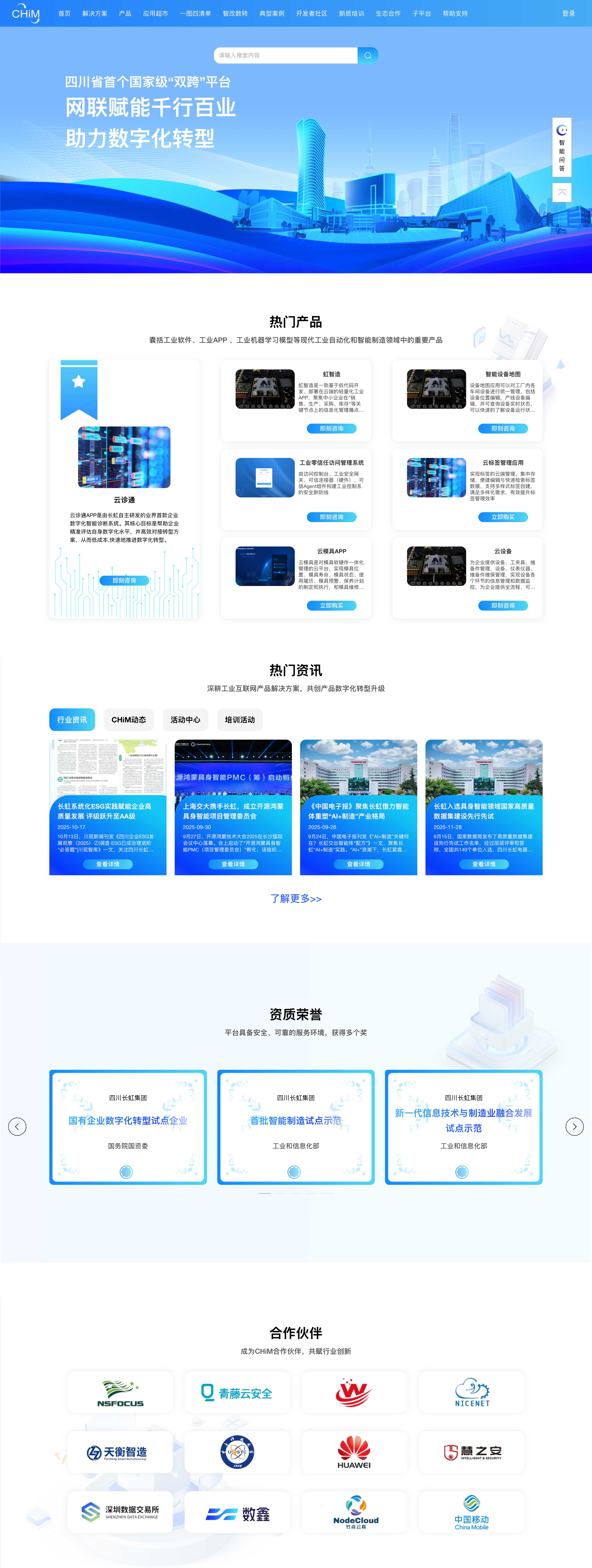 工业互联网作为国家新基建的核心组成,是推动制造业迈向高端化、智能化、绿色化的重要引擎。“长虹双跨平台”以数据为驱动,打通设备、系统与企业间的数字脉络,构建全要素、全产业链、全价值链的协同体系,切实助力企业提升生产效率、优化资源配置,赋能产业链现代化升级。